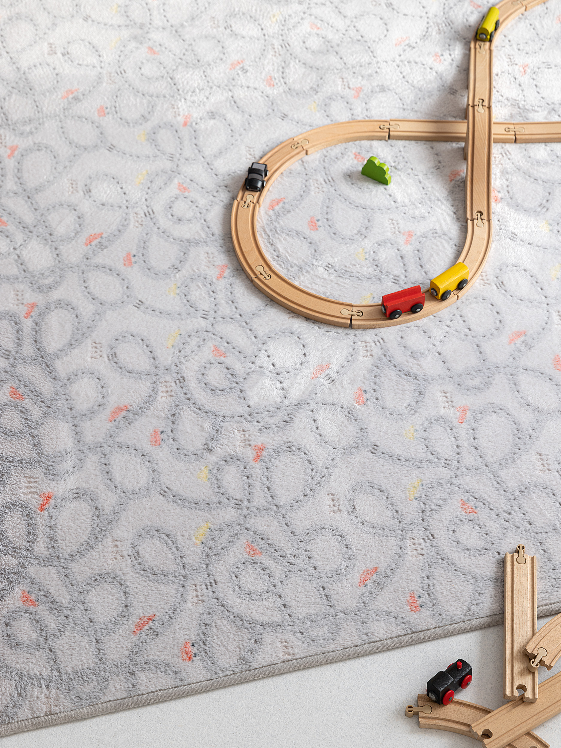 Χαλί Παιχνιδιού Luminous Collection 150×220+7 TRIP από ύφασμα illuminated fleece στο πάνω μέρος, non-woven στο κάτω, και γέμιση από σπογκώδες υλικό ώστε να είναι αναπαυτικό για το παιχνίδι του παιδιού.